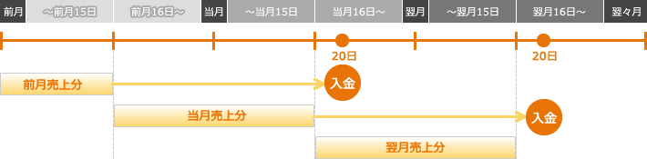支払日は締め日の翌月20日となります。(※金融機関休業日の場合は翌営業日)
